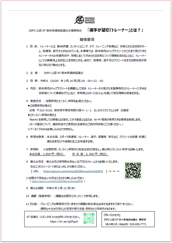 2 主 催: JSPO公認AT栃木県連絡協議会